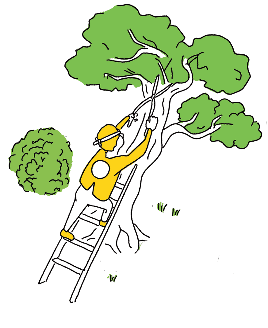 植物の成長や、それぞれの場所の使われ方を観察しながら手入れをしています。雑草だからと闇雲に刈らず、種類ごとの個性を知り、選びながら除草します。人の動線とぶつかってしまう枝や、木の成長にとって望ましくない枝を注意深く剪定します。