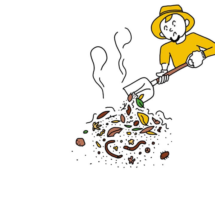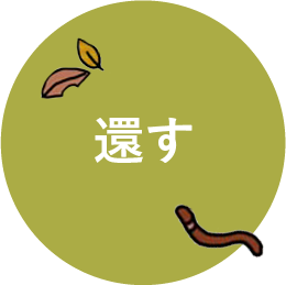 刈り取った草や落ち葉、剪定枝などを分解し、土へと戻していく。